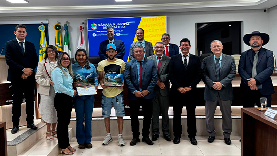 A Câmara Municipal de Costa Rica viveu um momento de celebração nesta segunda-feira (04), quando o segundo-secretário Roseno Martins de Arruda entregou, em nome do Legislativo, as Moções de Aplausos nº 06/2025 e nº 07/2025 aos atletas Samuel de Brito Oliveira e Cristiane Soriano de Castro.