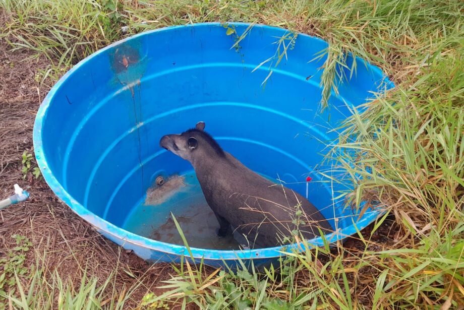A Polícia Militar Ambiental (PMA), em ação conjunta com o Grupo de Resgate Técnico de Animais do Pantanal (GRETAP), realizou o resgate de uma anta (Tapirus terrestris) no bairro Chácara Cachoeira, em Campo Grande.
