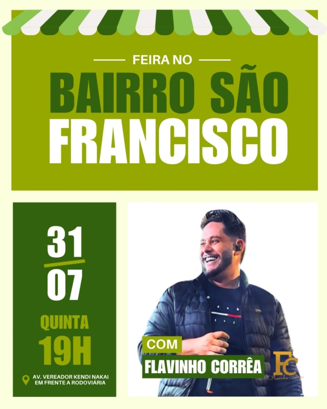 Além das delícias gastronômicas, a feira contará com um show musical ao vivo do cantor costarriquense Flavinho Corrêa. O ambiente acolhedor proporcionará um espaço de convivência entre os moradores, fortalecendo os laços comunitários e estimulando a economia local. Traga sua família e amigos e venha prestigiar essa celebração do Bairro São Francisco e adjacências!
