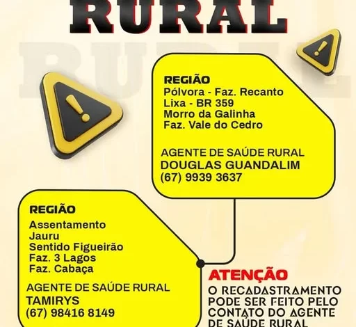 Para facilitar a vida do produtor e do trabalhador rural, o recadastramento pode ser feito diretamente pelo celular, entrando em contato com os Agentes de Saúde Rural: