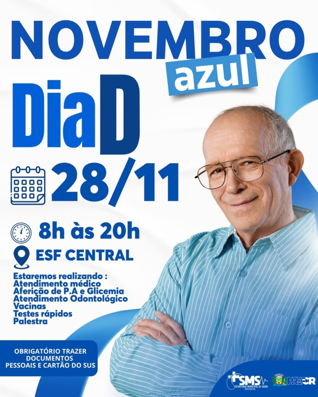 Costa Rica realiza hoje na ESF Central até às 20h, o ‘Dia D’ do Novembro Azul com foco na Saúde Masculina