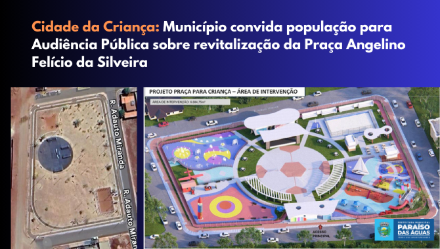 Prefeitura de Paraíso das Águasconvida população para Audiência Pública sobre revitalização da Praça Angelino Felício da Silveira e implantação da “Cidade da Criança”