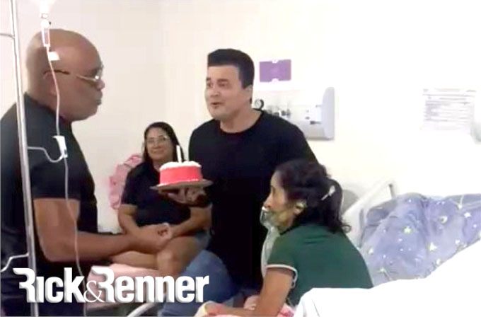 Rick e Renner chegaram com um bolo, cantaram alguns de seus sucessos e transmitiram palavras de carinho e incentivo para a fã e todos os presentes.